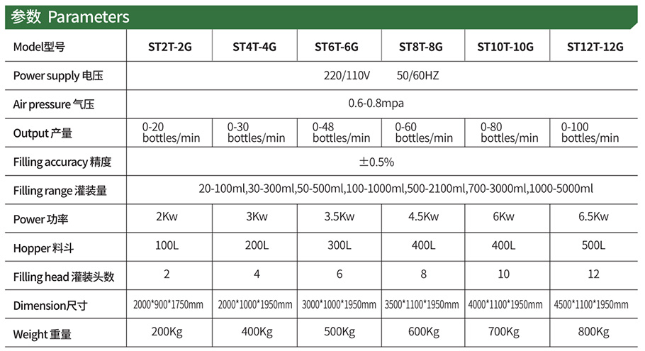High speed: servo drive piston filling, unique adjustable setting of first fast and then slow filling speed, to ensure the high speed stability of the piston movement stroke and filling speed: stepper motor drive filling head diving filling, improve the control and efficiency of the machine, filling volume adjustment is very convenient and fast, with 5 sets of different parameters specification storage, direct and quick call, no need to repeat the adjustment, invent patented products, imitation must be investigated high performance: with another invention patent of the full tetrafluoro sealing piston, to eliminate the use of O-ring seal brought by the leakage, Wear, corrosion resistance and other phenomena